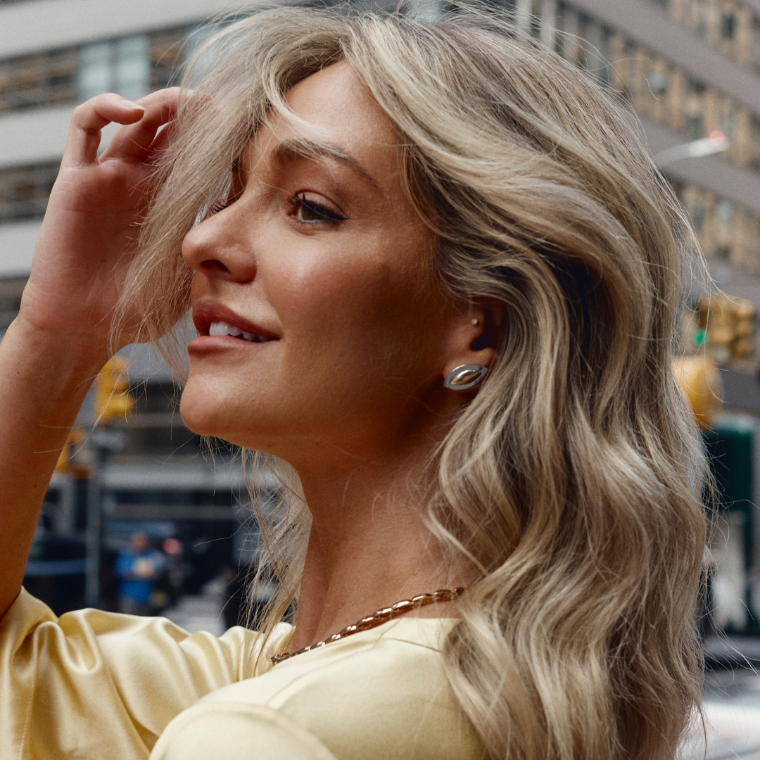 As seen at New York Fashion Week. Mixed metal marquise studs were designed for everyday polish. The perfect entry point to the mixed metal trend.