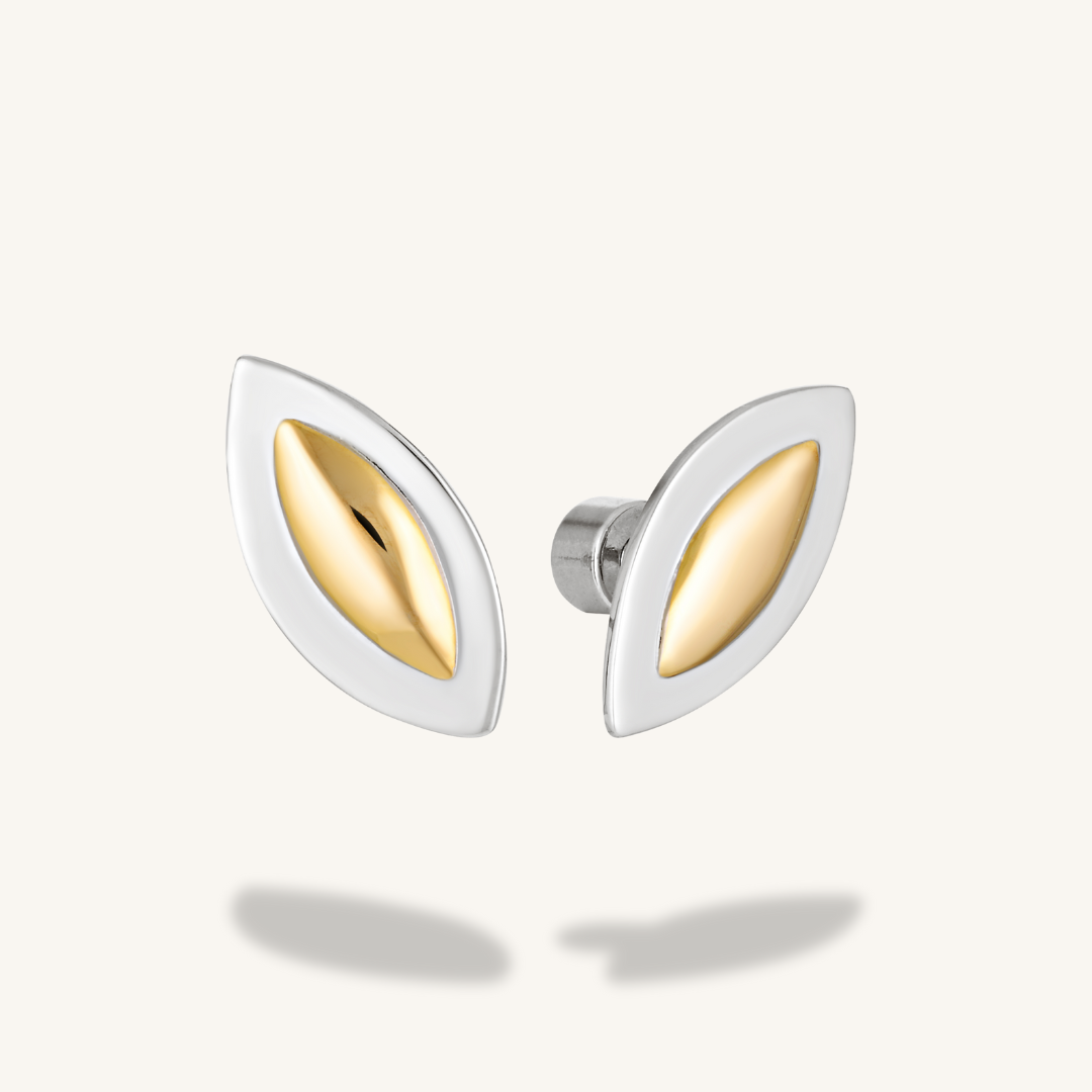The Marquise Studs are designed to bring interest and versatility to your earring collection. With a luminous gold centre framed by sleek silver, these studs strike the perfect balance between bold contrast and everyday ease.