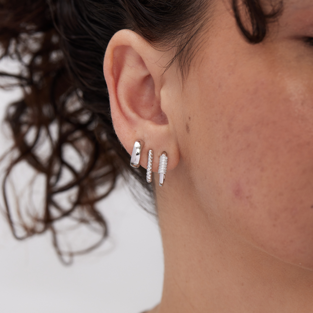 The perfect silver huggie with a unique twist detail. Made of sterling silver.