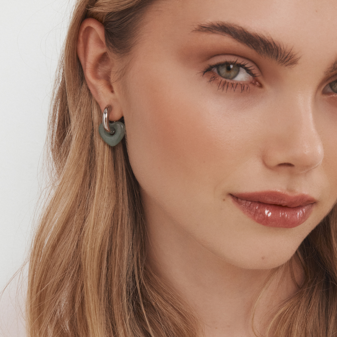 Featuring a green aventurine (Indian Jade) heart, this reworked Lisa Puffy Heart style leans into calm confidence and understated strength. The soft green tone adds a grounding, wearable element that feels considered, modern and effortlessly composed.