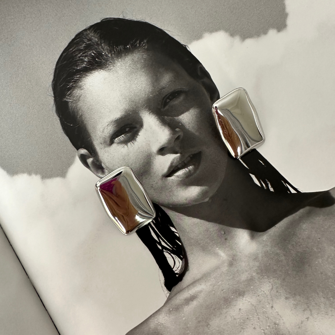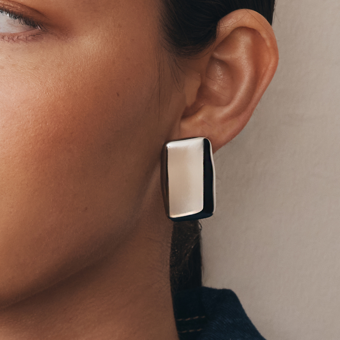 Rectangle shaped statement earrings with a hint of vintage charm. Sleek, chic and refined.