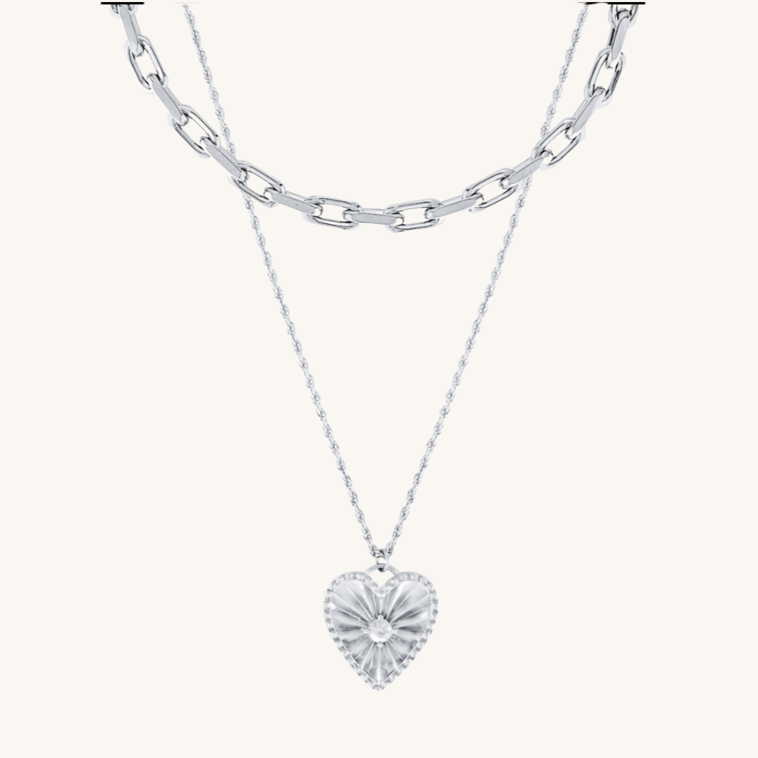 The bundle features our two hugely popular necklace styles, the Chelsea Chunky Chain Necklace and the Sophie Heart Pendant Necklace.
