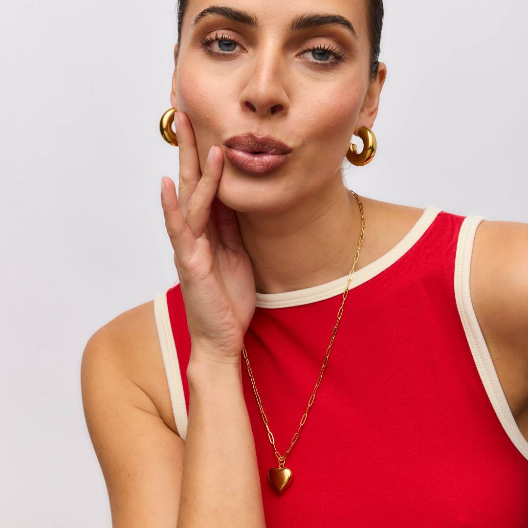 Ella Puffy Heart Necklace (Gold)