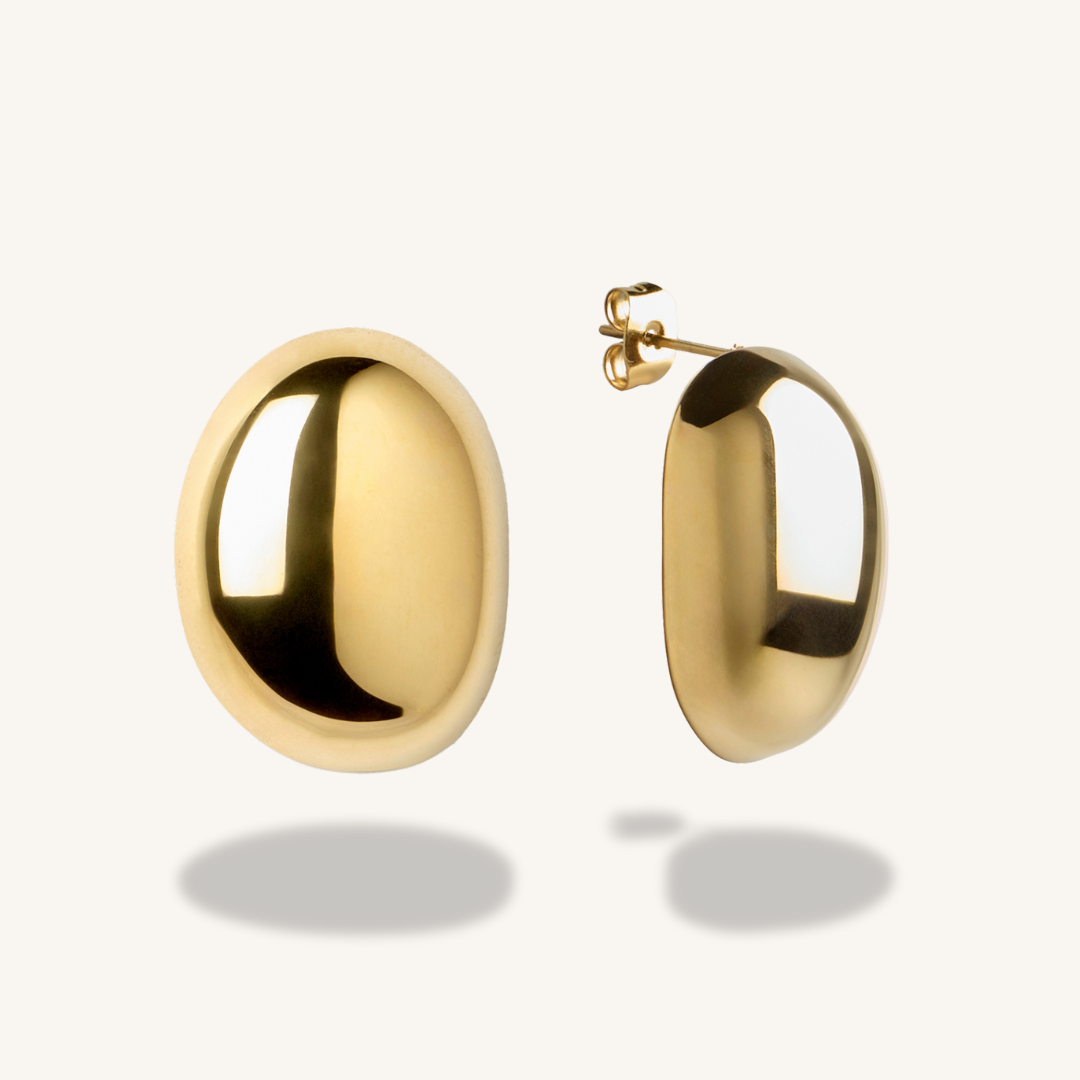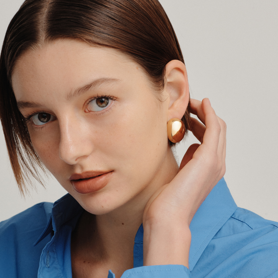 These high-shine gold domes are your new wardrobe workhorse; bold, sculptural, and ridiculously easy to wear. Whether you're in denim or a dress, they add just the right amount of polish.