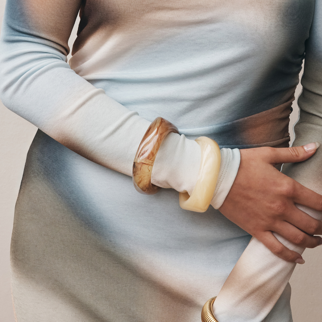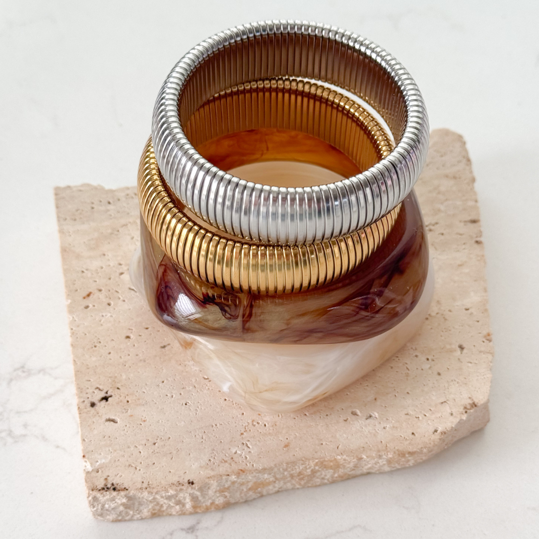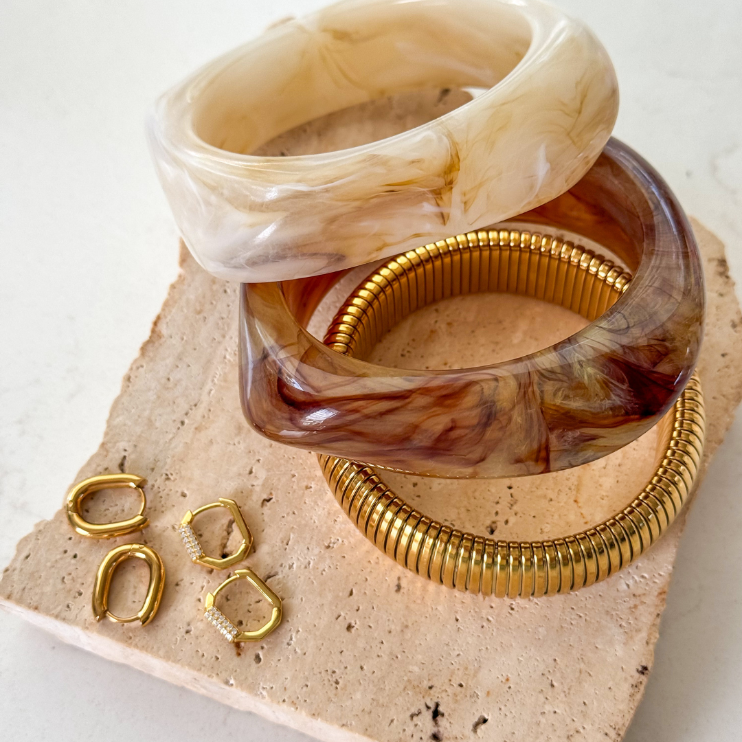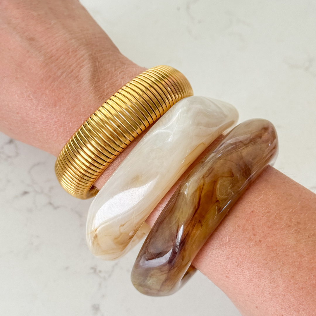 Try it in a stack with our Chunky Resin Bangle in Coffee or Gold and Silver Ribbed Bangle.
